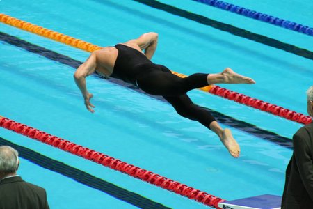 Flying machine: Roland Schoeman gets airborne at the start of the men’s 50m butterfly final. Photo © pullbuoy